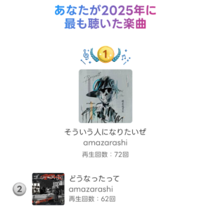 LINEミュージックのサービスで、今年よく聴いた曲を集計してくれるものがあるようで。