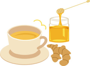 はちみつとすりおろし生姜をマグカップに入れてお湯を注ぐだけ。簡単。